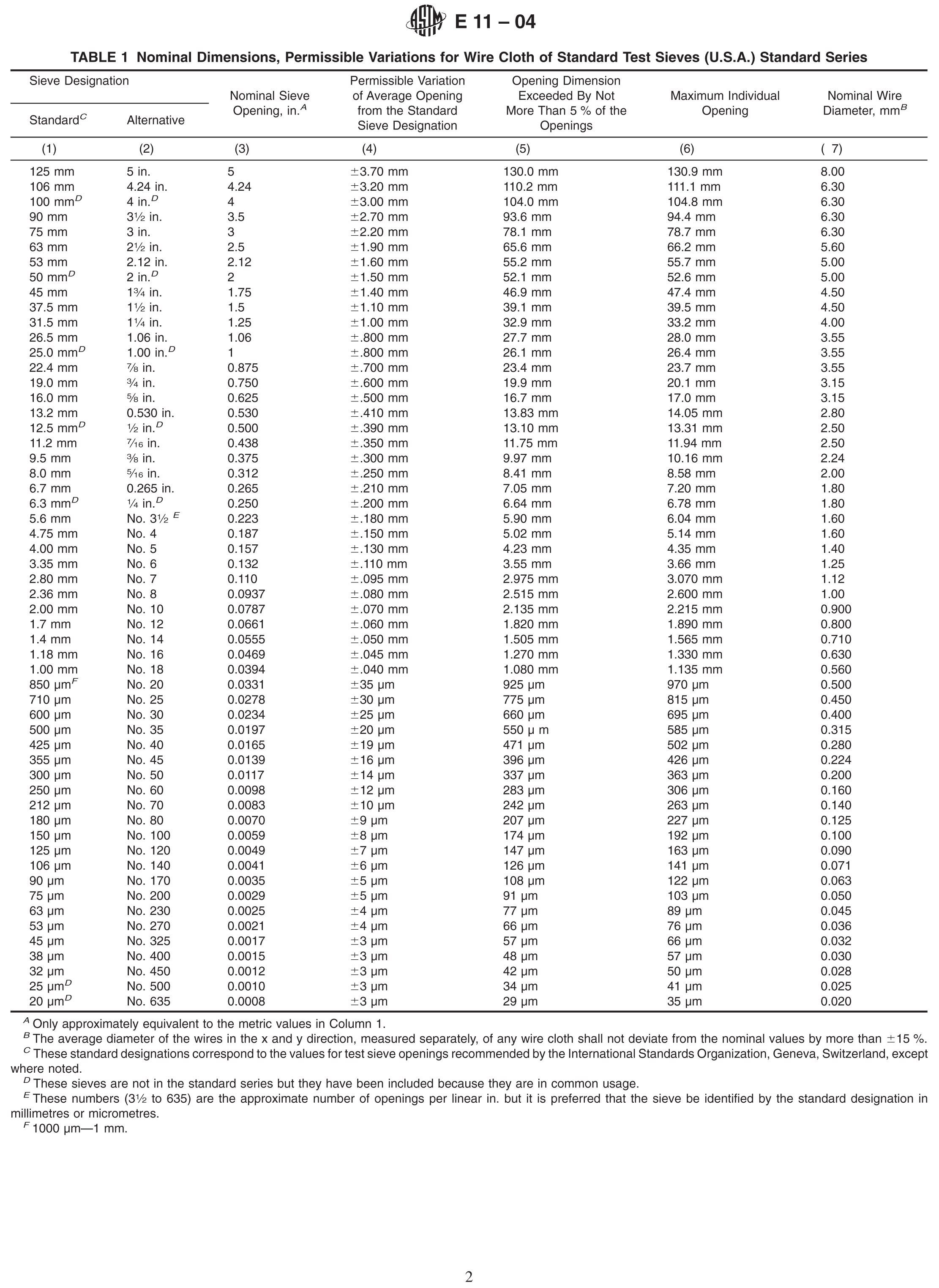 標(biāo)準(zhǔn)篩數(shù)據(jù)